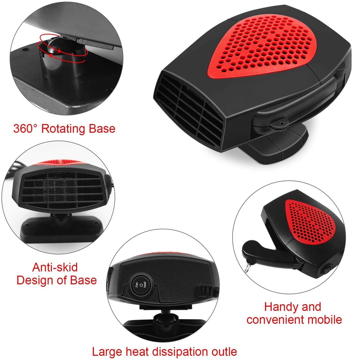 【Rotation à 360 degrés avec poignée】 Le chauffage de voiture 12 V dispose d'un support rotatif à 360 degrés qui peut être utilisé pour régler et redresser facilement.