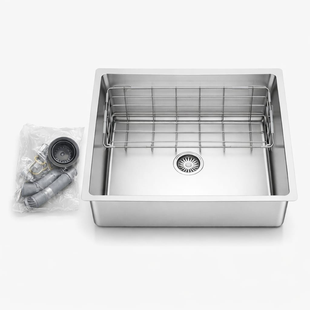 Evier de cuisine inox 304 44x 38 CM Satini Avec Grille et siphon et Kit de Fixation Sanili