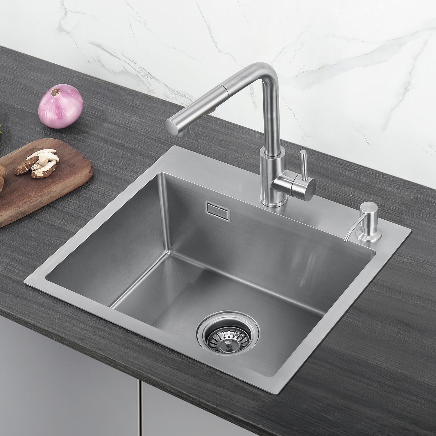 Evier fait main avec distributeur 68*45cm satine