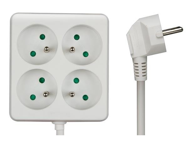 Bloc Multiprises 4x2P+T Carre 1.5m Blanc is available for purchase in increments of 1