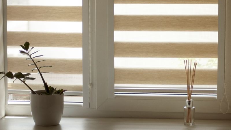 Store à Bandes Verticales Beige 150x150cm