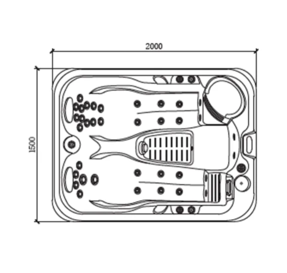 Chauffage et contrôle avancé : maintenez une température idéale avec le réchauffeur (Heater) de 1 × 2 KW. Le tout est piloté par le système de contrôle VIRPOL P25885 et son panneau de commande PB557, offrant une gestion intuitive des fonctions du spa.