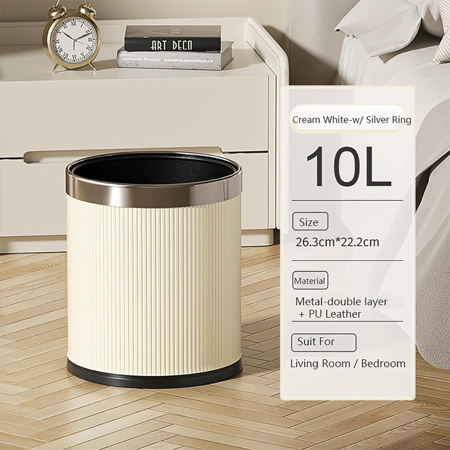 Poubelle Double en Semi Cuir Blanc