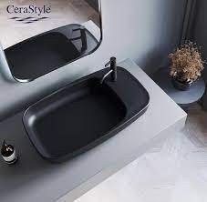 La vasque à poser CeraStyle Nova 70x42 cm de couleur noire est un lavabo moderne en céramique conçu pour être installé sur un plan de travail.